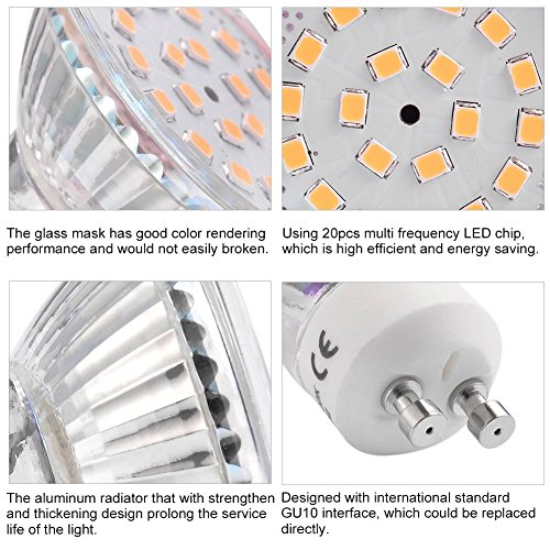 Ledgle GU10 LED Bulbs, Equal to 60W Halogen Bulbs, 3.5W 350 Lumen 120 Degree Beam Angle, MR16 20 LED Chips Lamp Beads, 3000K Warm White Bulb, LED Light Bulbs, 6 Pack