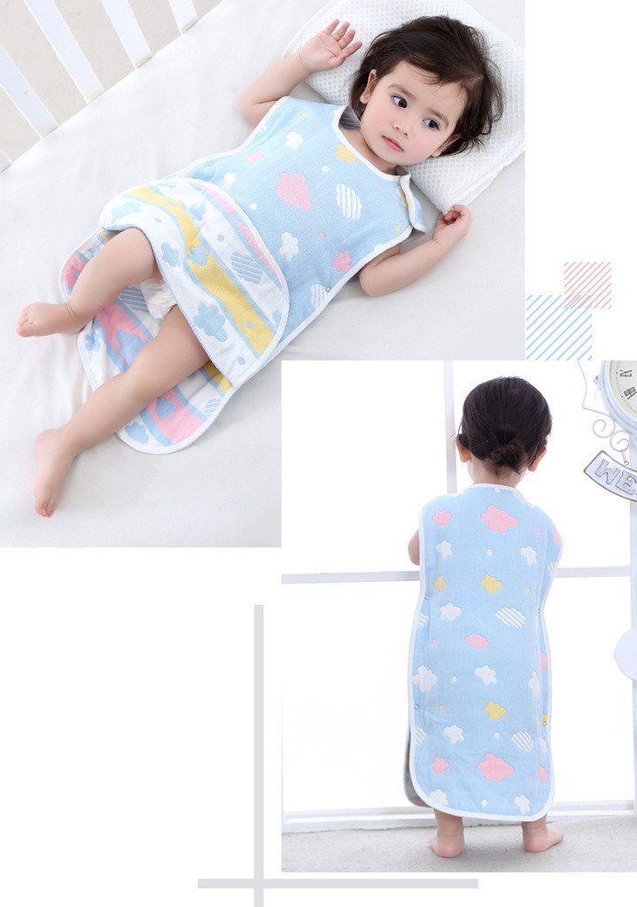 It's a sleeper with 100% cotton gauze that you can easily wash at home and easy to keep clean.