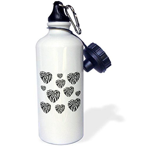3dRose wb_29206_1 Multi Zebra Hearts Trendy Fashion Animal Print Sports Water Bottle, 21 oz, White