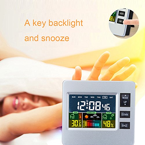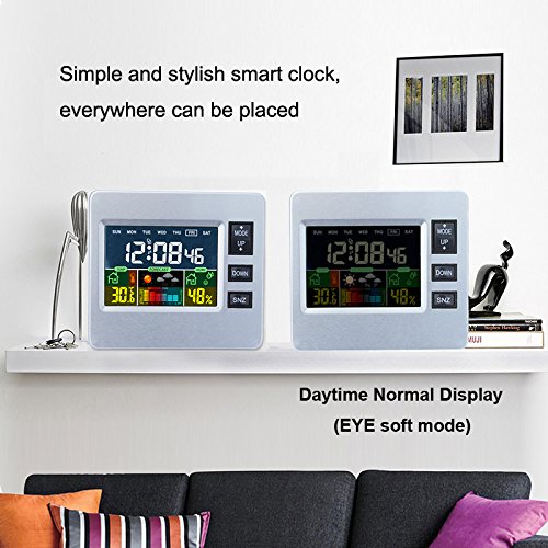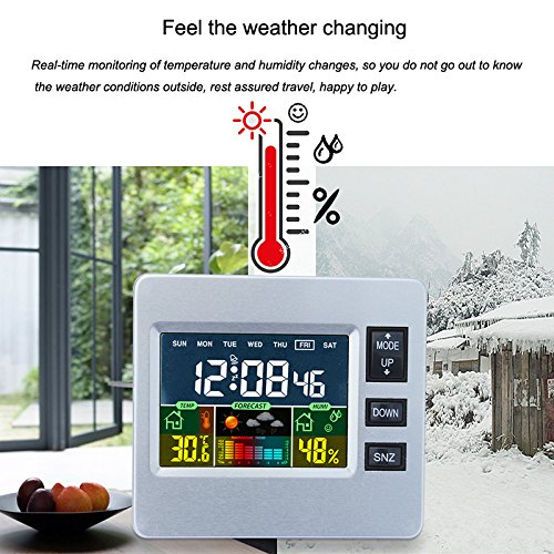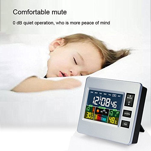 Studio : SAILFLO Publisher : SAILFLO Binding : Kitchen Product Description Portable and Tabletop Design Easy to Operate Time(PM), Date, Alarm Clock Press the Mode button to select the right mode(Time/Date/Alarm) Hold down it for 3 seconds until the digits are flashing. Press next two buttons to adjust the digits, and then press the"Mode"button again to advance to the next digis in that setting. When you have finished the updated digits, click the "Mode" button again, and then set up successfully. Warm Tips: Please hold down "12/24" button for 3 seconds, the time can become PM. Turn the Alarm On or Off Press 12/24 button, a alarm clock sign between the two digits on the screen means the alarm clock has been turned on. The sign disappear, mens clock be turned off. Warm Tips: You can click"Snooze / Light" button to snooze the alarm, it will beep again in next 8 mins. Smiling Face Icon The three smiling face signs give you an intuitive sense of the weather. Let you easy to know the weather is Dry, Comfortable or Wet. Warm Tips Temperature is not between 20 ℃~25℃, and 40%≤Humidity≤60%, No face icon appears. Specifications 1.Temperature Range: 30°F ~ 122°F (0°C ~ 50°C). 2.Humidity Range: 20% ~ 99% RH. 3.Frequency of Readings: 8 seconds 4.Material: Plastic. 5.Weight: 4.2 ounce 6.Dimension: 3.4 x 0.9 x 3.04 inches inches 7.Power Supply: 2 x AAA 1.5V Battery (Not included) Applicable Scene Temperature and humidity use a wide range, suitable for indoor and outdoor, such as bedroom, baby room, office, greenhouse and so on. Package Includes 1 x GLISTENY Temperature and Humidity Monitor 1 x Manual 0