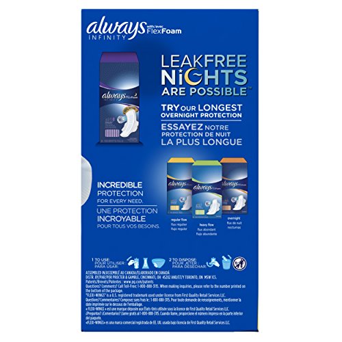 ReleaseDate : 2016-09-06 Studio : Procter Gamble - HABA Hub Publisher : Procter Gamble - HABA Hub Binding : Health and Beauty Product Description A pad unlike any other! Always Infinity Regular Pads With Wings offer protection you can barely feel. That's because they're made with incredibly thin FlexFoam. It's a unique material that provides up to 100% leak-free protection, yet is so soft and flexible that it feels like nothing. Revolutionary wing design provides more secure protection, and it absorbs 10X its weight so you can stay confident all day long. For unique feminine protection, try Always Infinity Pads With Wings. 0