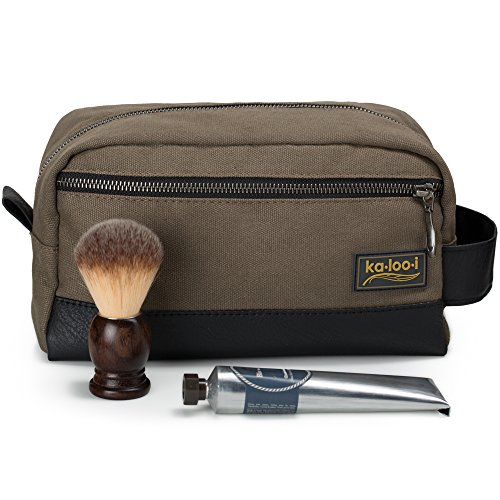 Toiletry Bag for Men: Canvas Dopp Kit for Travel, Gym, Grooming & Shaving, Waterproof Lining, 10" x 4.5" x 5.5", Olive Green with Vegan Leather Trim,...
