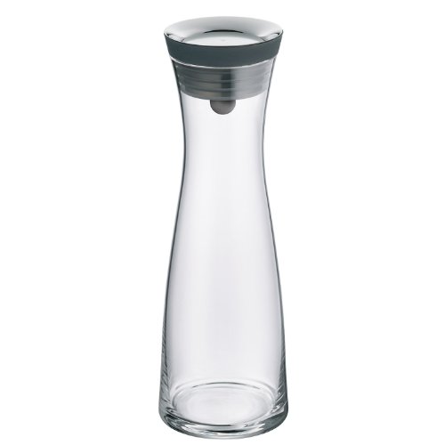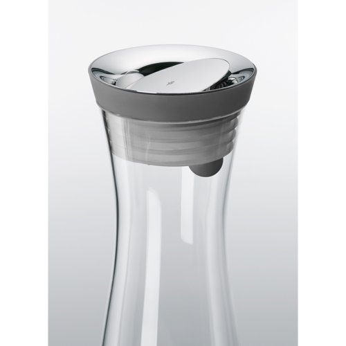 Studio : WMF Publisher : WMF Binding : Kitchen Product Description This wmf basic water carafe designed by kohler and wilms features an innovative patent pending design: the cromargan 18/10 stainless steel lid opens automatically when tilted for the pour, and the contents flow into the glass accurately and without spillage. Also, an integrated strainer in the lid holds back ice cubes and pieces of fruit such as slices of lemon. When not in use, the carafe stays closed keeping the contents fresh. The lid can be completely taken apart and is easy to clean, and the generous opening the carafe is very easy to fill. The attractively shaped bottle fits in the refrigerator door and is dishwasher safe. 0