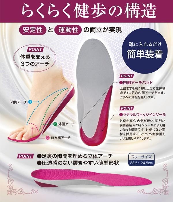 足裏のアーチを復活させて、正しい歩行で理想的な姿勢に導きます。自分のサイズにカットして、靴に入れるだけの簡単装着です。 |
