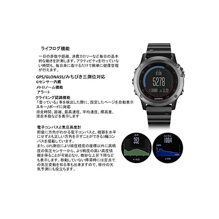 원본상품명: GARMIN(ガミン) 登山 アウトドアウォッチ GPS マルチスポツ 100m防水 ライフログ fenix 3J Sapphire 【日本正規品】 サファイアガラス 133828