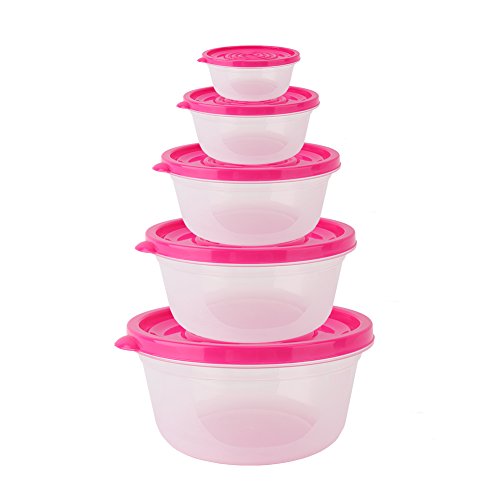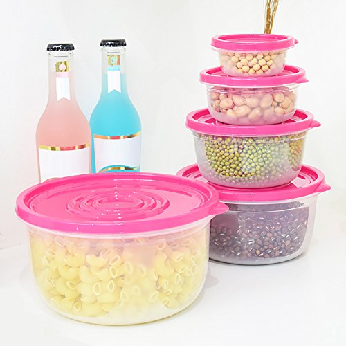 Yarssir Round Silicone Reusable Plastic Seal Food Storage Containers Set of 5