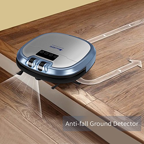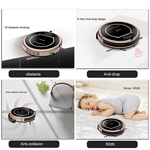 【SCHMALES DESIGN】Dieser Roboter misst 340 mm x 95 mm, dank seines niedrigen Profils kann er unter den Mobeln, Betten, Sofas und allen anderen schwer zuganglichen Bereichen reinigen; mit seinem 15 Grad Neigungswinkel klettert er auch uber Ihre Teppiche und Teppiche.
