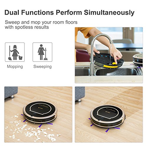 【5-REINIGUNGS MODIS】Kehr- und Wischverfahren; wahlen Sie Ihren bevorzugten Modus, um jeden Fleck Ihres Hauses grundlich zu reinigen; es gibt spezielle Modi fur die Tiefenreinigung von Flecken oder Partikeln sowie Tierhaaren und Schmutz.