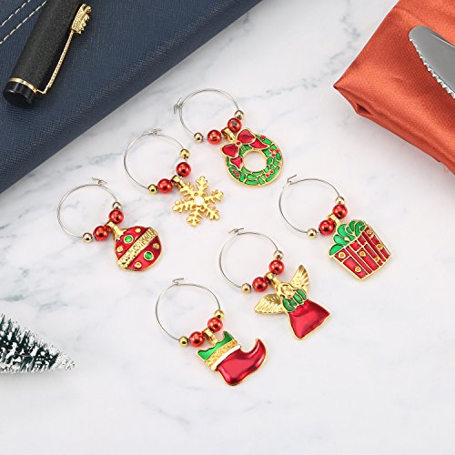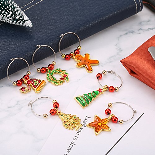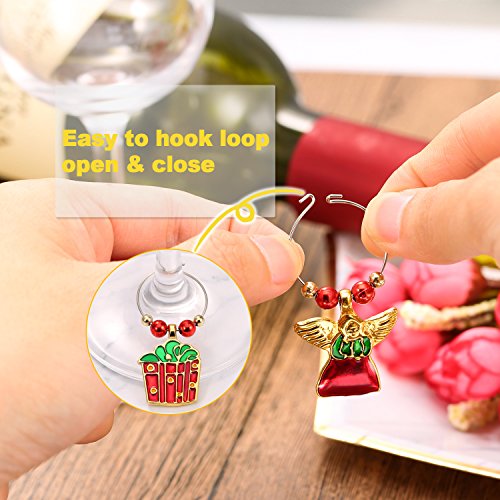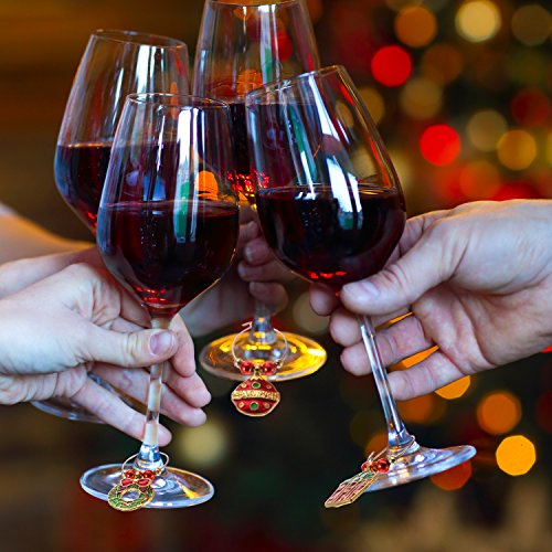Good party accessories: Suit for Christmas party or various costume party, decorating the bottles, glasses with these cute items, make the party full of surprise here and there. Hangs well and security, add some interesting stuff for the dull cup, the stylish and popular party glass decorative accessory. Unique gift: Ingenious Christmas present for friends and family members, appropriate for the festival, cute and delicate which will leave a deep impression for your guests. Make more crafts: Festival theme shapes match with eye catching colors, apply to your DIY earring, bracelet and other crafts, they will make you stand out in the crowd. Can also decorate the Christmas tree, bar, or use as curtain pendant, and so on. Specifications: Quantity: 12 pieces Material: zinc alloy Package includes: 12 x Wine glass charms rings 0