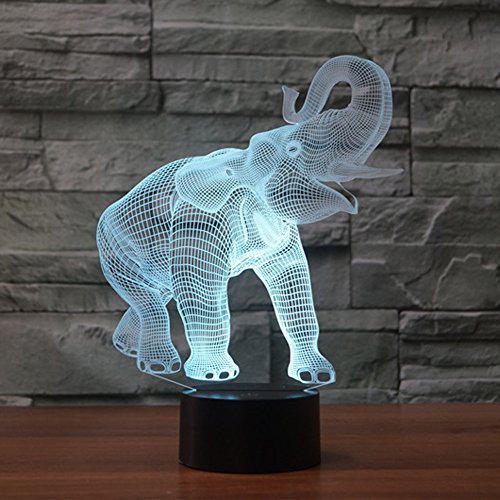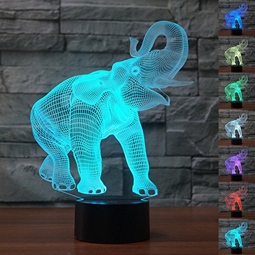 NChance Christmas Gift Magic Elephant Lamp 3D Illusion 7 Colours Touch Switch USB Insert LED Light Birthday Present and Party Decoration
