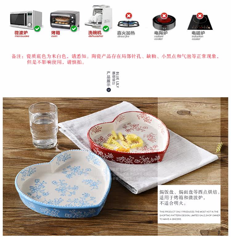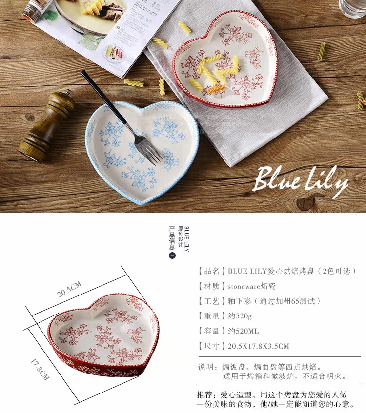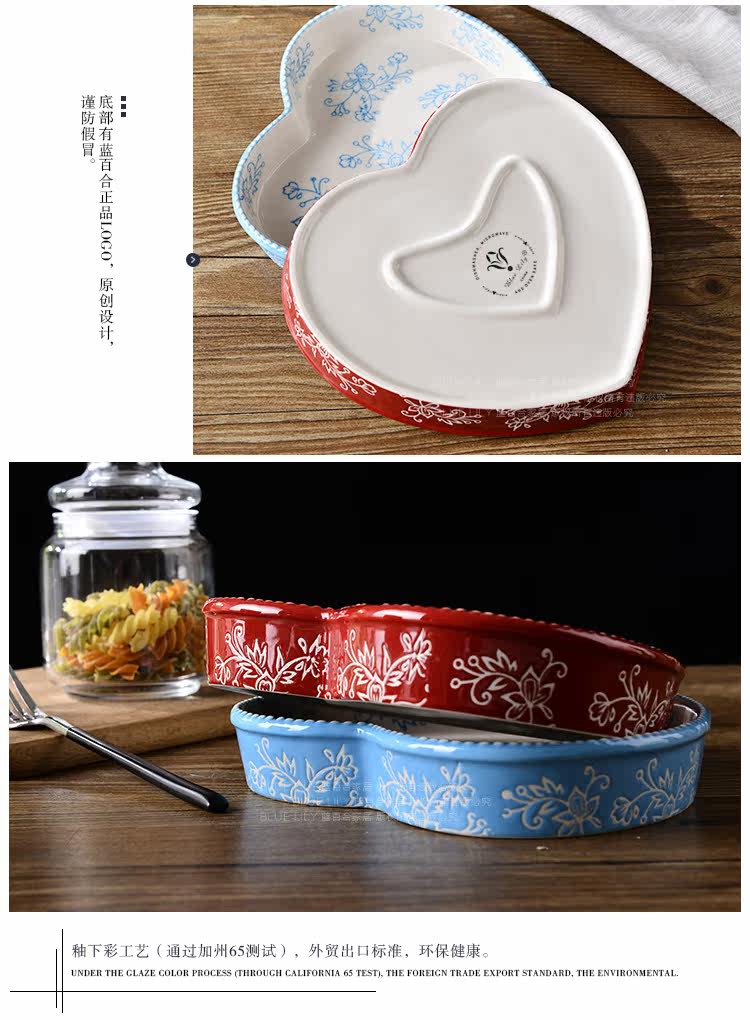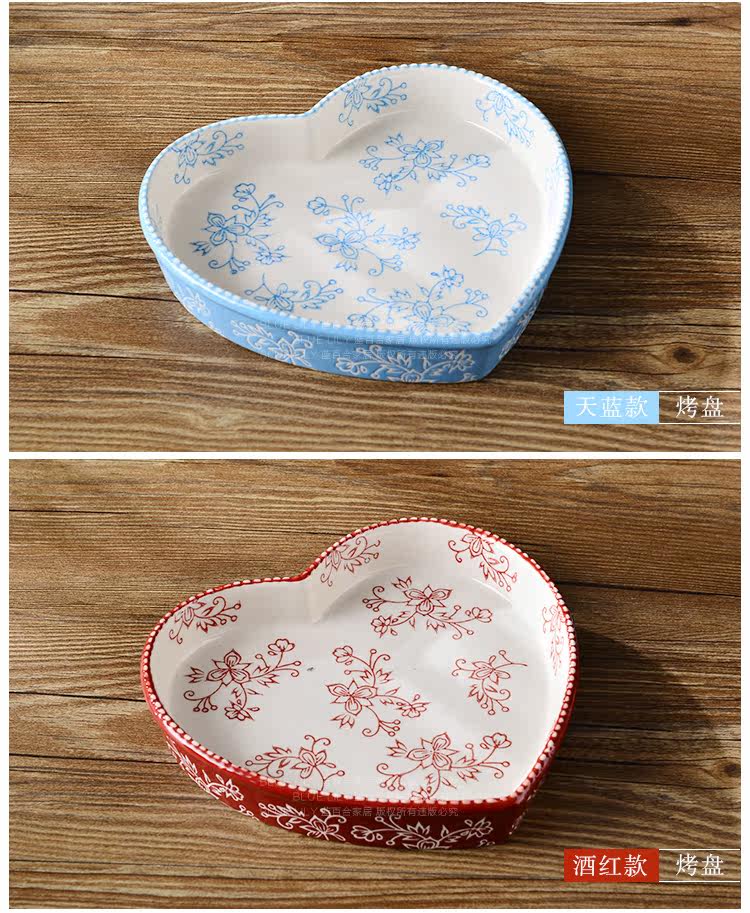 美式田园刻花爱心形陶瓷焗饭烤盘 8英寸菜盘点心盘烤箱烘培模具盘