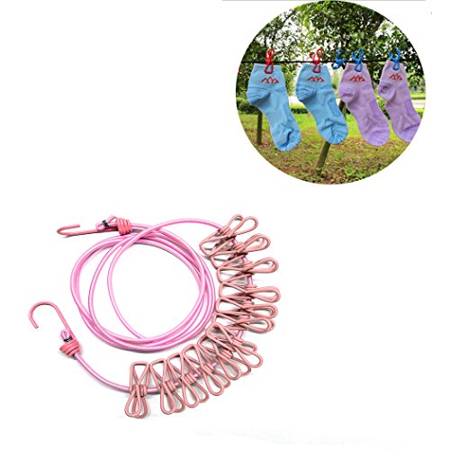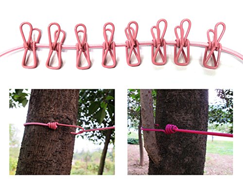 Hooks securely fastens onto poles, tree branches, or columns. Comes with strong clamping forced 12 slip-resistant wire clips that reliably clamps onto clothes even on a windy day