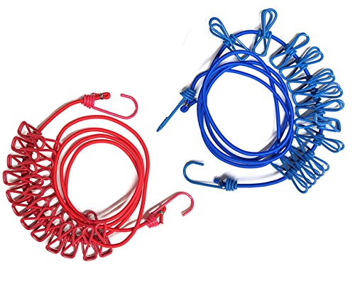 Portable Clothesline Aoyoho Pack of 2 Portable Travel Windproof Clothesline Adjustable Retractable Clothesline Camping Clothesline With 12 Pcs Clips for Outdoor and Indoor Use