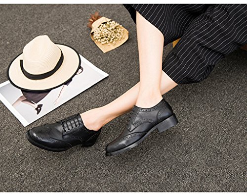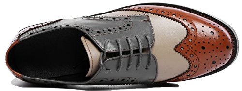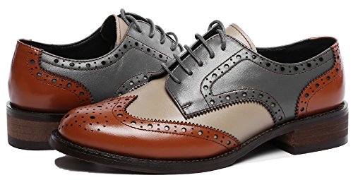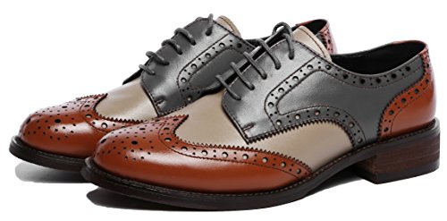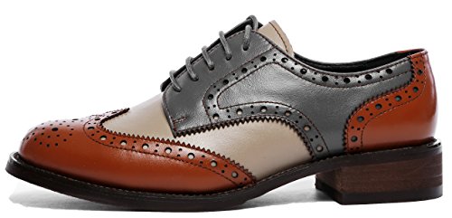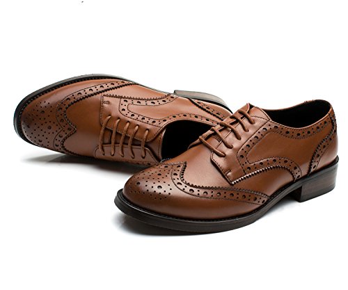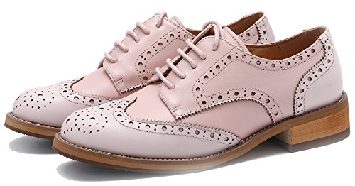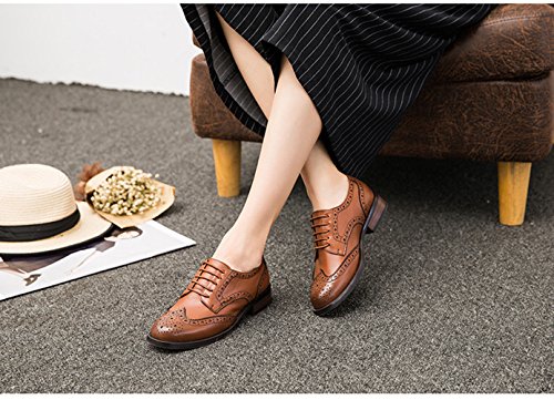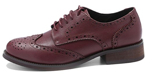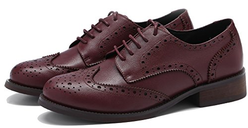 | U-lite Women's Perforated Lace-up Wingtip Leather Flat Oxfords Vintage Oxford Shoes Brogues |