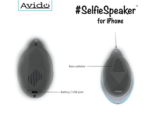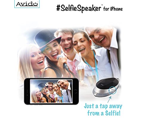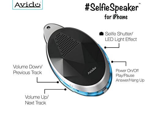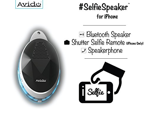 Avido™ #SelfieSpeaker [iOS] iPhone Selfie Remote Control & Bluetooth Speaker with *Blue LED Light Show* - HD Sound, Wireless Control Camera Shutter, Speakerphone – Neck Strap Included (Black)