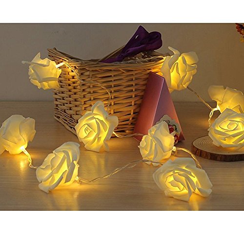 30 LED White Rose Flower Indoor Fairy Lights Battery Powered for Valentine's, Wedding, Bedroom, Indoor Decoration