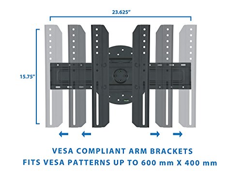 -. Feature : SUPPORTS MOST TVs: TV screen sizes 32, 35, 37, 40, 42, 45, 47, 50, 52, 55, and 60 inch. Supports Samsung, Sharp, LG, TCL, Westinghouse, Vizio, Element, Sony, and most other TV models. Ideal for home, business, retail, warehouse, school, theater, apartment, garage, and other applications / ROTATE FROM LANDSCAPE TO PORTRAIT: Swivel and twist your screen from 0 to 360 degrees around. Move your screen from landscape to portrait without every uninstalling or unmounting your screen. / LOW PROFILE: 1.8" extension from the wall. Its low profile design will keep your monitor looking sleek and modern. / HEAVY DUTY CONSTRUCTION: Made from cold rolled steel alloys for maximum optimal strength and durability. Weight capacity of 110 LBS covers most LCD LED and Plasma displays on the market. This wall mount is built to last. Coated in a reinforcing black powder finish for a contemporary appearance / SIMPLE INSTALLATION: Slide-in VESA plate provides easy access for attachment and detachment from the wall. VESA plate can support 200x200, 400x200, 300x300, 400x400, and 600x400 mounting bracket patterns. All hardware is included with easy to follow instructions
