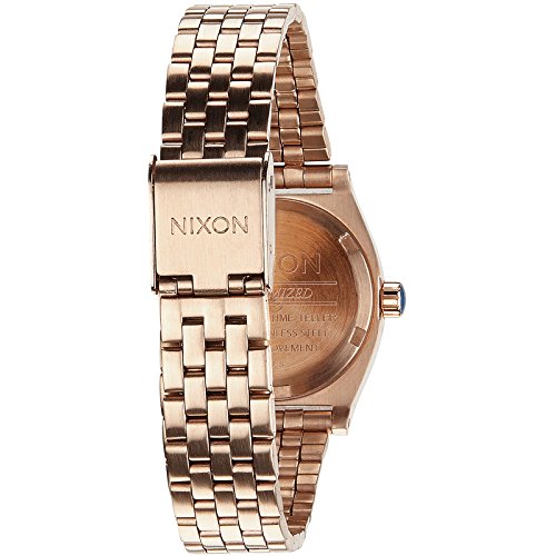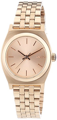 This Nixon The Small Time Teller watch has a PVD rose plating case and is fitted with a quartz movement. It fastens a rose metal bracelet and has a rose dial.