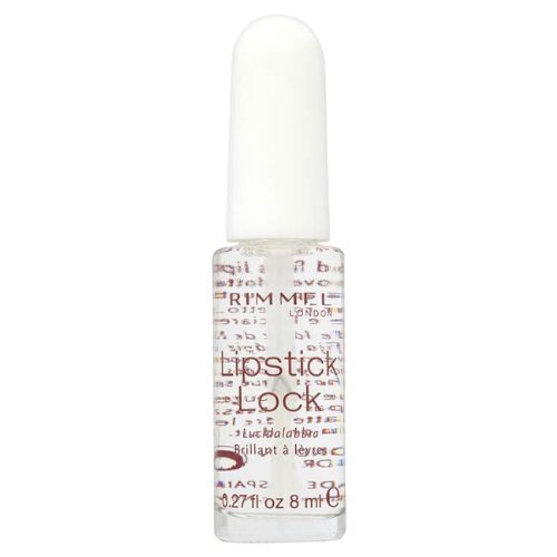 Feature : Rimmel Lipstick Lock. Lock and seal your lipcolour for longer wear! / Brush lightly over blotted lipstick. Keep lips apart until dry.
