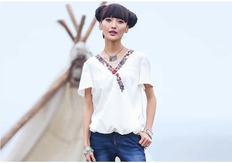 | 刺绣V领短袖衬衫 | | 产品款号: | 51152324 | | 产品克重: | 0.158kg