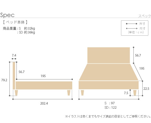 ●サイズ(cm):幅122x奥行202.4x高さ79.2(床板高さ22.5)cm・約36kg