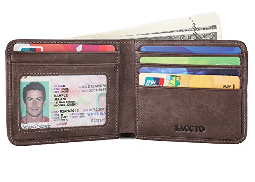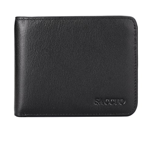 -. Title : Mens Wallet Genuine Leather Bifold Wallet with Coin Pocket and RFID Blocking