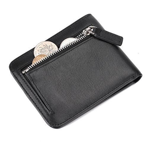 -. Feature : Made from top-grain cowhide leather, a good idea to be your daily wallet / Big capacity design: 6 card slots (include 1 photo slot), 2 hidden pockets, 1 zippered coin pocket on the back, 1 full-length bill section / Measures L4.13 x W3.46 x H0.4 inches (10.5 x 8.8 x 1cm), can holds 8+ cards plus 15+ US bills and some coins / Build into a RFID blocking layer to keep your P.R.Ivate information safe / Covered by our 2 years warranty