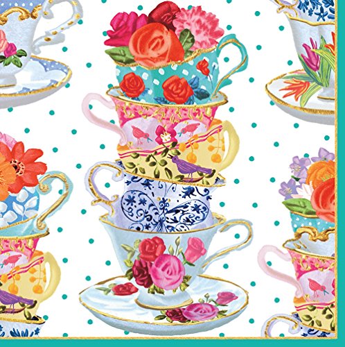 - Entertaining with Caspari tea cups cocktail napkin; box of 40