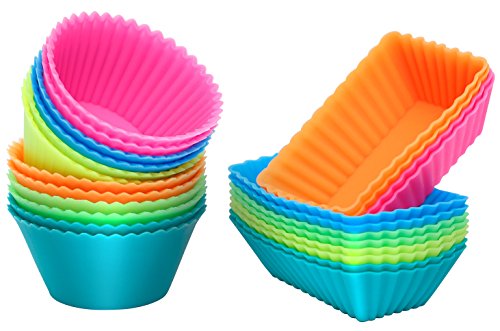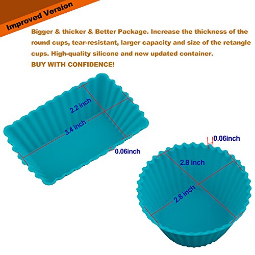 - Reusable - Say good-bye to traditional paper cups,stay green. 12 Rectangular Silicone Baking Cups and 12 round Silicone Baking Cups Set- Perfect Match for baking cupcake.