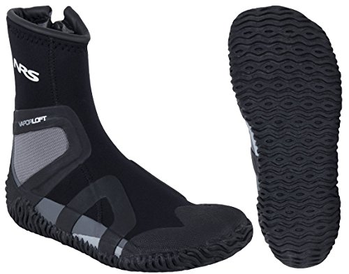 Studio : NRS Publisher : NRS Binding : Misc. Product Description NRS Men's Paddle Wetshoes - The Men's Paddle Wetshoes by NRS are an excellent choice for all types of boaters. Warm, comfortable and convenient, the side zipper entry makes it easy to put on over bare feet, wetsocks or drysuit socks. The high-top, low-profile design provides outstanding warmth and protection without bulk. 3 mm Terraprene neoprene with heat-reflecting titanium adhesive keeps feet toasty when the water's chilly and the soft, fleece-like VaporLoft lining repels water and dries instantly for superior warmth and comfort. A 3 mm thick high-traction sole, paired with a 5 mm neoprene insole, protects your feet from rocks and roots, while the sole wraps up around the heel and toe for extra protection. Extra padding over the outside ankle protects that pressure point inside your boat. A roomy, naturally shaped toe box frees your toes for all-day comfort and stretchy rubber support bands improve lateral stability without adding volume. Whether you are into whitewater or flatwater kayaking, you will want to make sure you have the NRS Men's Paddle Wetshoes. 0