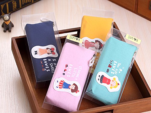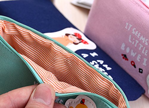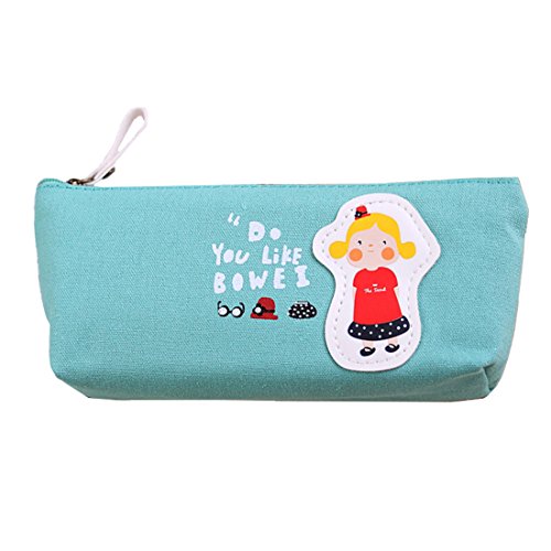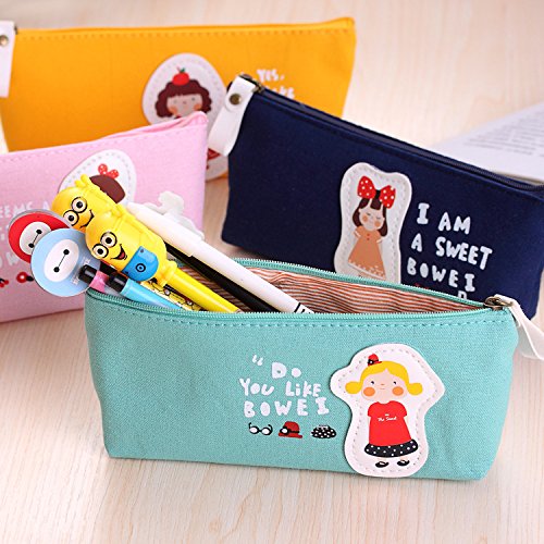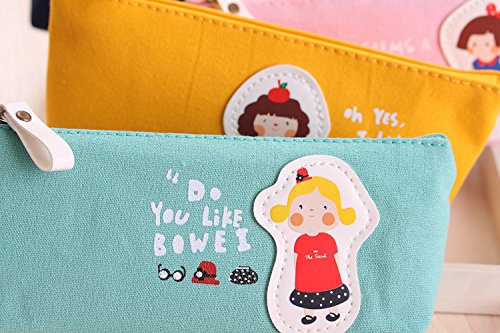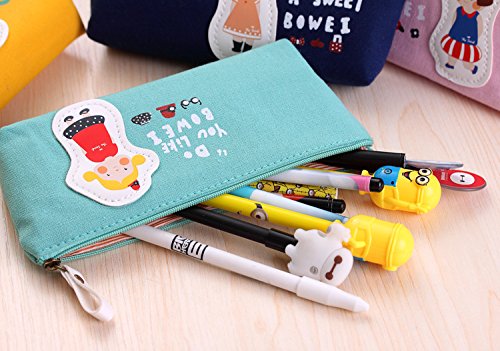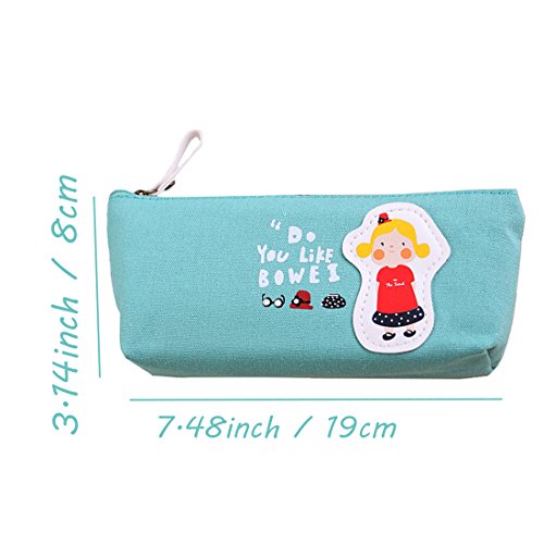 Cute Candy Color Cartoon Girls Style Pen Bag Canvas Zippered Pencil Cases For Kids Adults (Light Blue)