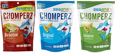 SeaSnax Chomperz Crunchy Seaweed Chips 3 Flavor Variety Bundle: (1) SeaSnax Chomperz Jalapeno, (1) SeaSnax Chomperz Original, and (1) SeaSnax...