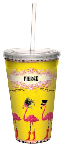 Tree-Free Greetings 80546 Sassy Fierce Funky Flamingos Art by Duirwaigh Gallery Artful Traveler Double-Walled Cool Cup with Reusable Straw, 16-Ounce