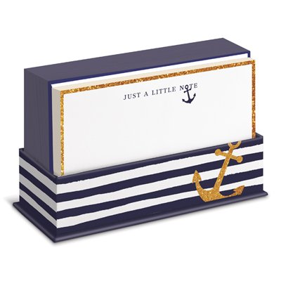 -. Feature : Graphique de France Navy Anchor Flat Note Cards / Box of 50 flat note cards, includes navy envelopes / Flat white cards edged in gold foil and glitter, with navy blue anchor / Cards measure 5 1/2" x 3 1/2"; navy and white striped box measures 6" x 4" x 2 1/2" / P.R.Inted "Just A Little Note"