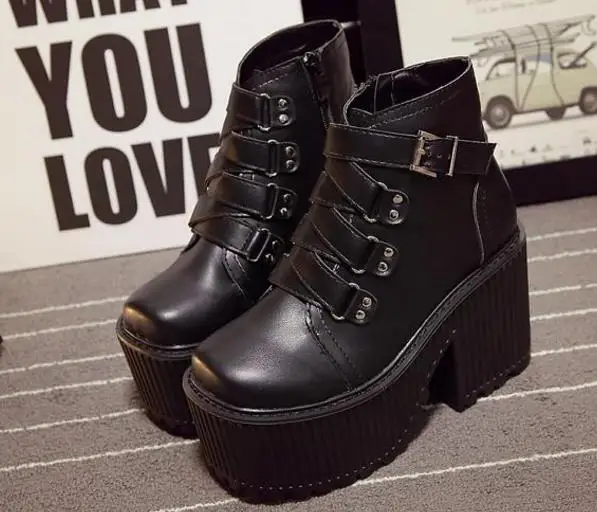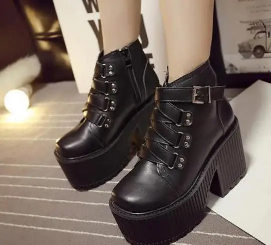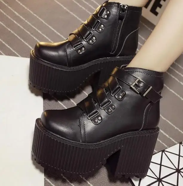 woman boots:Heavy - sole motorcycle rider Martin's boots