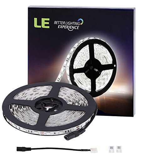 LE 16.4ft 300 SMD 5050 LEDs Flexible Strip Lights, Daylight White, Non-waterproof, 12 Volt, Indoor Party Christmas Holiday Festival Celebration Decoration