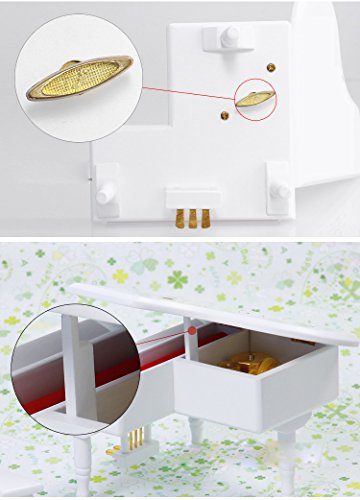 - Feature : Free or standard shipping is via EUB, and it will take 6-10 workdays to deliver. Expedited is via DHL, it will take 3-5 workdays to deliver. / A Small Wooden Vintage Piano Shaped Music Box. Exquisite workmanship excellent overall. And it have white,brown two colors to choose. / Mechanical music box, no need battery. Installed the clockwork at the bottom of the piano , rotating the clockwork, you will listen the sweet music. It can play the music of Castle in the Sky, and also can be a really good decor on your table. / This Musical box hidden jewelry grid, you can put rings and other jewelry in the red velvet, give her/him an surprise. / Perfect Romantic Anniversary Birthday Wedding Valentine's Day Christmas Gifts for Women Girlfriend.