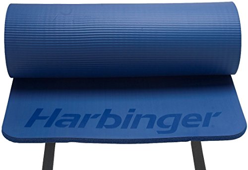 Amazon.com Product Description Made from exclusive 5/8-inch-thick, closed-cell anti-microbial Durafoam, this Harbinger mat is ideal for stretching, Yoga, floor exercises, and Pilates. The mat offers a "double thickness" construction that makes floor workouts more comfortable, along with a moisture-resistant skin that's easy to wipe down. The mat's nonskid ridges meanwhile, keep you from slipping during your workouts by gripping the floor securely. Most importantly for long-term use, the Durafoam material prevents bacterial growth and odor, so your mat will stay as healthy as you do. The mat--which includes a removable strap for easy transport and storage--measures 72 inches long by 24 inches wide. 0
