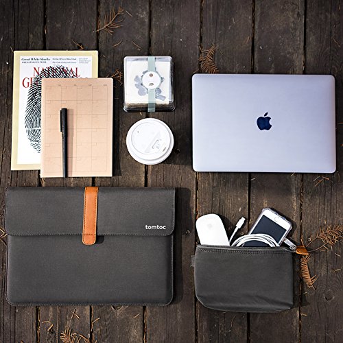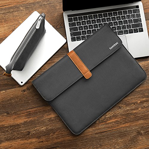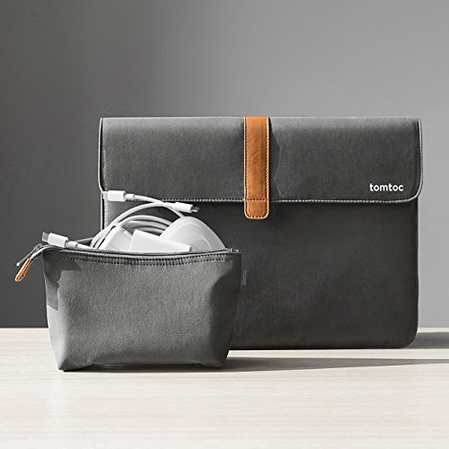 Tomtoc 15 Inch New MacBook Pro 2016 Touch Bar Envelope Sleeve Tablet Carrying Case with Accessory Pouch, Dark Gray