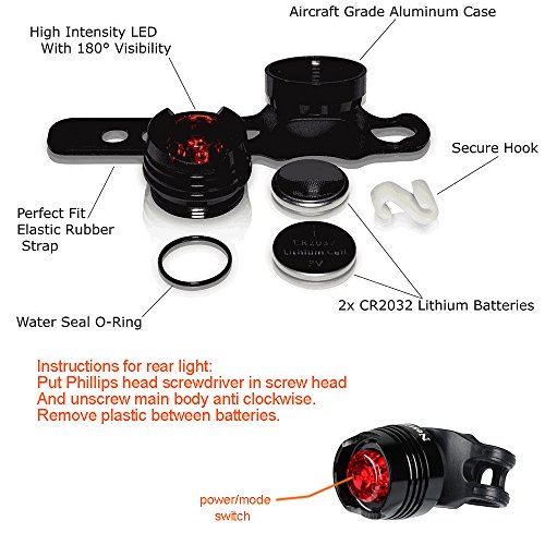 The LED light set mounts quickly onto bicycle handlebars and seat posts. Great for cycling at night or in places where visibility and safety are a concern