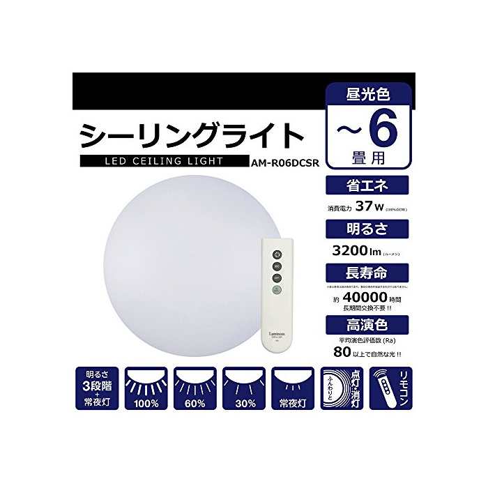 드 소《샤》 루미나스 LED실링 라이트 ~6다다미조 광타입 광확산 렌즈 탑재 심플 리모콘 부착 AM-R06DCSR