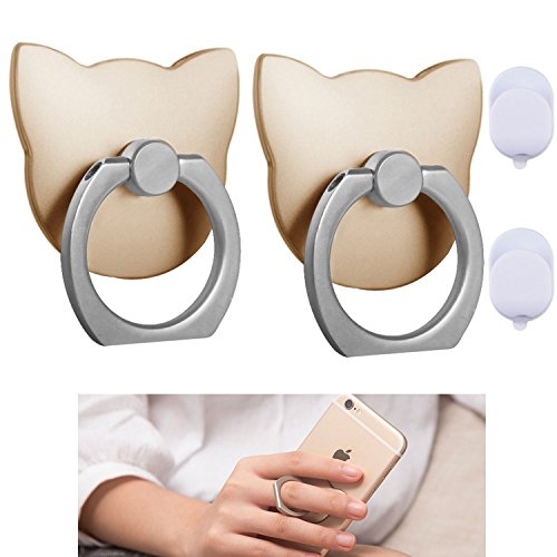 Phone Ring holder & Stand 2 Pieces,Metal Finger Grip Stand Holder Ring,Car Mount Phone Ring Grip for iPhone 6s plus/ 7 plus, Samsung Galaxy S7 edge Smartphone Ring stent Tablet (Gold Cat 1)