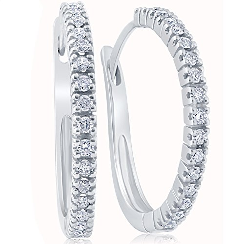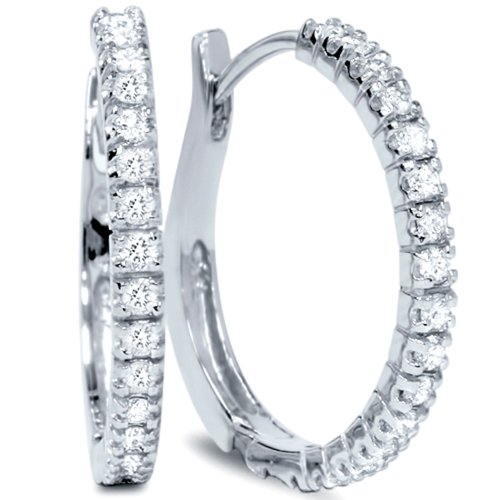 -. Title : 1/2ct Diamond Hoops 10K White Gold