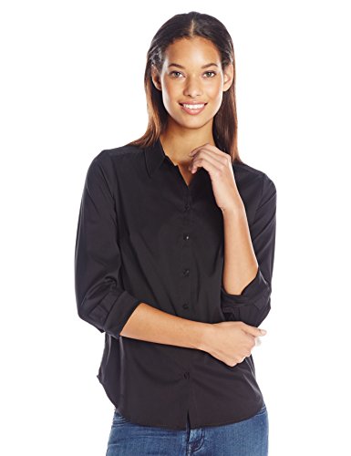 Soft and comfortable stretch nylon fabric moves with you and doesn't have a compressed feel. Detachable 'fit solution' tank is designed to contour, flatten, and slim. Tank features a scoop neckline and straight hem. Point collar. Front button closure. Long sleeves feature single-button cuffs. Darting at front and back create a tailored silhouette. Straight back yoke. Shirttail hemline. 78% cotton, 19% nylon, 3% elastane;