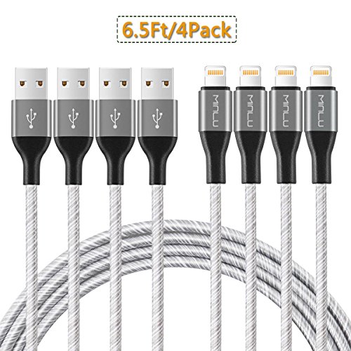 Minlu iPhone Charger cable, 4Pack 6.5ft Extra Long Braided Cord Lightning wire USB Charging data cable for iPhone7 7Plus 6s 6sPlus 6 5s 5c, iPad Air, iPod touch.