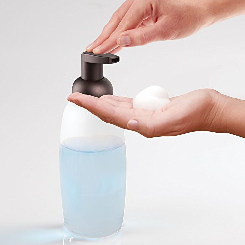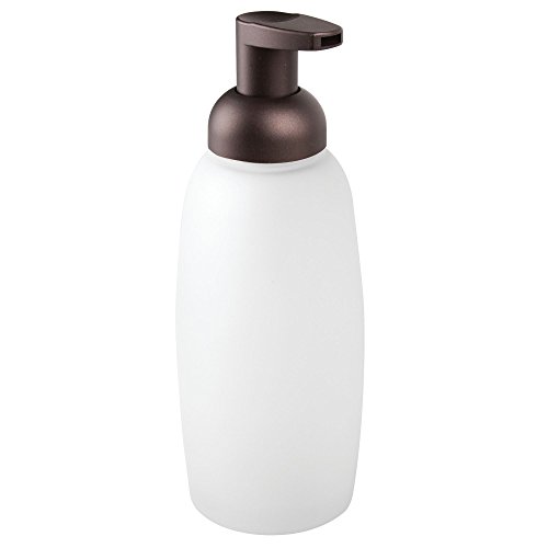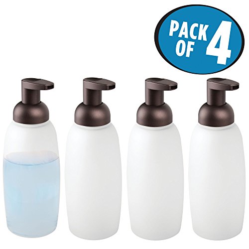mDesign Foaming Liquid Hand Soap Glass Dispenser Pump Bottle for Bathroom Vanities or Kitchen Sink, Countertops - Pack of 4, Frost/Bronze