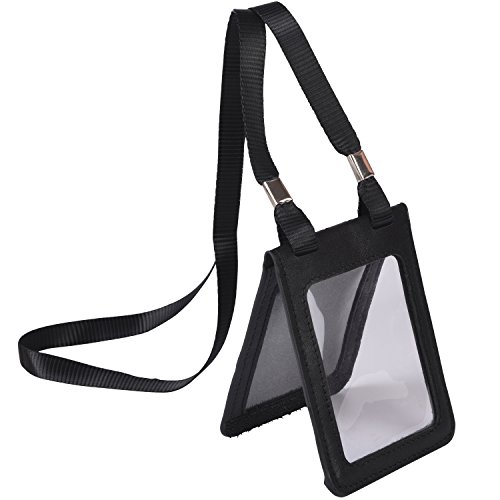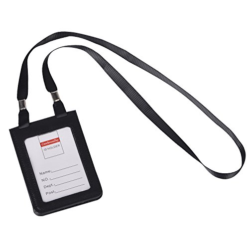 Cmxsevenday C68807 Folding Genuine Leather ID Card Holder with 2 ID Windows, Vertical Style - Black