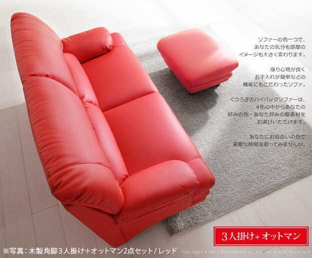 ●モダン ハイバック 合皮 ラグジュアリー 三人掛 ポケットコイル