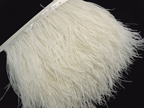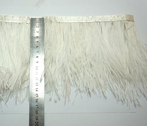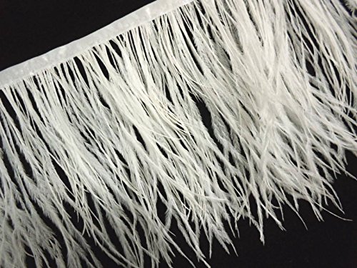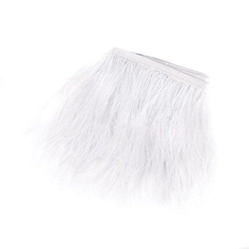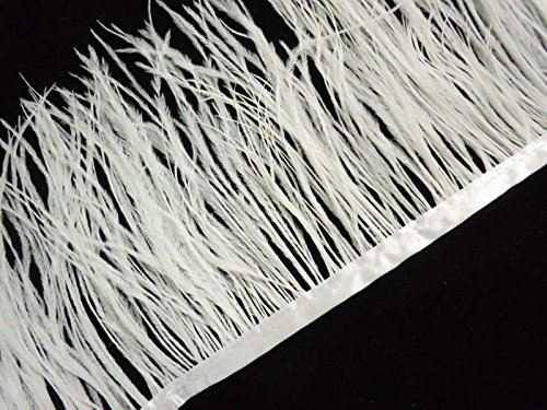 Lanshi Ostrich Feathers Trims Fringe with Satin Ribbon Tape for Dress Sewing Crafts Costumes Decoration Pack of 2 Yards (White)
