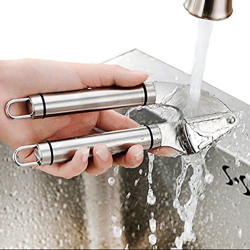 - FRESH CRUSHED GARLIC, QUICKLY & EASILY: All garlic lovers out there, rejoice! With this amazing, extra-large capacity stainless steel garlic press, you can always have delicious, fresh crushed garlic, quickly and effortlessly!